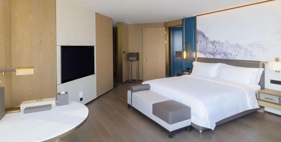 海天大酒店是青岛国信集团下属会展酒店公司旗下的五星级豪华海景酒店,酒店位于青岛国信·海天中心T1塔。地理位置优越,位于青岛市区的人文核心区域,地处城芯优越地标。坐拥典藏级的山海美景,传承了岛城的百年经典,将传统与现代完美融合,引领城市潮流新风尚。集精品商务、高端会议、城市度假及鲜活美味于一体,立足于“国际标准、国内一流,沿海领先”的总体定位。酒店所用家具由金凤凰家具集团倾力打造。