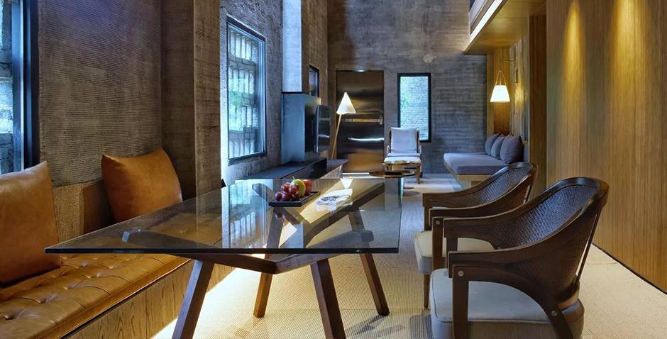 在宽畅的天花以及海棠湾明媚的风光衬托下,以大量的木头铜制图腾以及当地素材及装饰配上室内精选的陈设在尽显瑰丽气息的同时也蕴含一丝低调的明敏内敛。同时,在酒店各处所摆设的许多收藏品亦为瑰丽酒店增添许多充满艺术感的惊喜及一点奢华体验。旅游所追求的往往不需要很具规模,有气势的形象,舒适且让人感到宽心,有气质及生活感的体验才是大家所追求。以木头、图腾配以海洋元素,用现代的手法诠释构建优雅低奢的空间。随性却保持格调,素雅的色调,营造家的温暖与亲密性,颠覆一般酒店的距离感。简约线条的重迭价值,在各细节中均变换运用。设计元素互相呼应却又各具特色,所打造的惬意度假空间与人建立亲密的连结性。