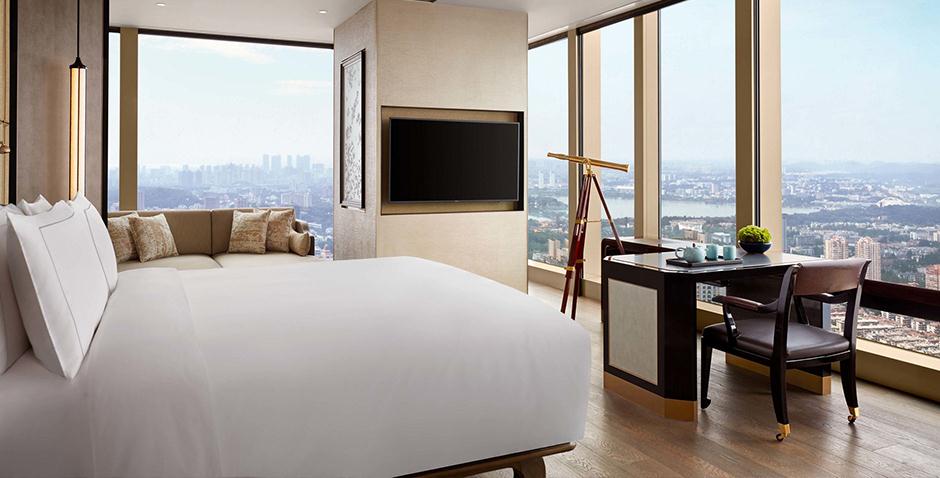 酒店客房分布在42楼及以上,坐拥迷人都市山湖景观。顶奢配置的客房硬件,构筑出繁华喧嚣都市之上闲逸的旅居空间。酒店拥有295间隽雅舒适的客房,其中包含32间设有厨房和餐厅的套房。