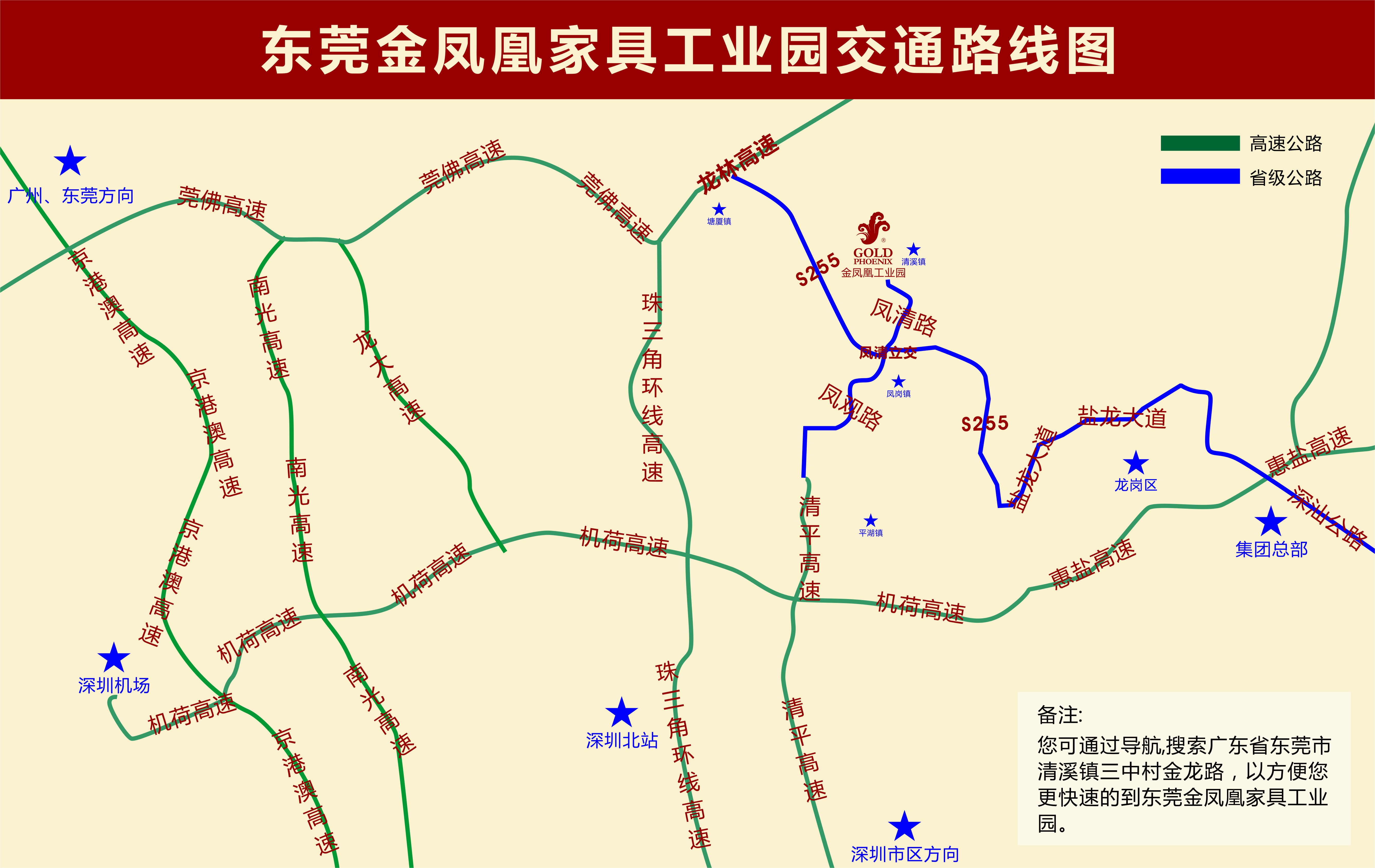 金凤凰东莞工业园地址:广东省东莞市清溪镇三中村金龙路 金凤凰家具(国际)集团
